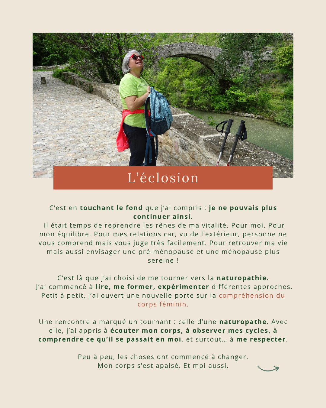 Je suis certifiée praticienne en naturopathie et j’ai pu intégrer deux formations qui font de moi aujourd’hui une experte dans l’accompagnement des femmes mais aussi des séniors et des aidants.
